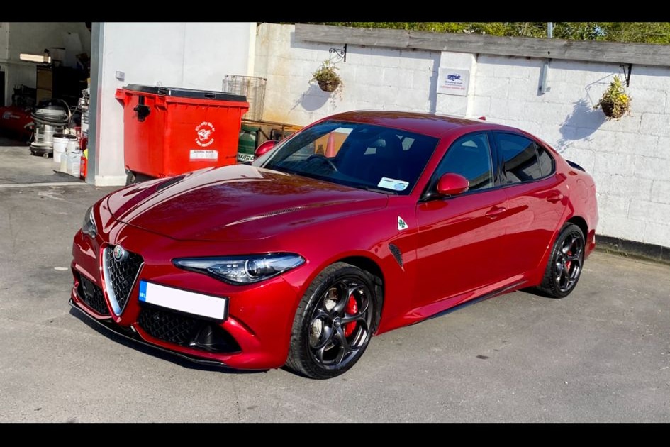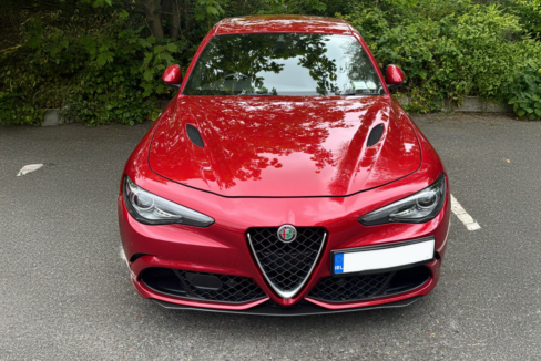 The 2018 Alfa Romeo Giulia Quadrifoglio is a driver-focused super saloon, powered by a Ferrari-derived 2.9-litre twin-turbocharged V6 producing 505 hp and 600 Nm of torque. Paired with an 8-speed automatic transmission and rear-wheel drive, it launches from 0-100 kmh in just 3.8 seconds and reaches a top speed of around 307 kmh.
