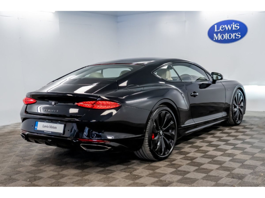 This includes 22″ Ten Spoke Wheels in Black Painted Black Edition Bentley Rotating Display Touring Specification Continental Blackline Specification Ventilated Front Seats with Massage Function Black Gloss Radiator Matrix Grille Heated Duo-Tone 3 Spoke Hide Trimmed Steering Wheel Dark Chrome Interior Specification Bentley Dynamic Ride Mood Lighting Specification Embroidered Bentley Emblems Top View Camera Night Vision Head-Up Display Adaptive Cruise Control Dinamica Headlining Sports Pedals Piano Black Veneer Standard Equipment 4G LTE telephone module Adaptive cruise control All wheel steering Apple car play Bentley rotating display Bentley safeguard plus Blind spot warning Bluetooth and Wi-Fi audio streaming Brake pad wear indicator warning light Collision prevention assist E-call Engine start/stop button Front/rear park distance control Hands free boot opening Head up Display Inductive phone charger Lane assist Navigation system Night vision Online real time traffic information Park assist system PAS POI (search) Power latching to all doors for easy entry Rear axle steering Reversing camera Reversing traffic warning Top view camera Traffic assist Traffic sign recognition Trip computer 3 Chamber air suspension with continuous damping control Battery charger Bentley Dynamic ride Bentley performance active chassis Dynamic ride height control + ground clearance function Electronic limited slip differential 60GB hard drive Acoustic and heat insulating front windscreen Acoustic glass Adaptive brake lights Auto dimming door mirrors Auto dimming rear view mirror Automatic headlights Bentley lettering on the boot Black edition exterior badge Black edition tread plates Black winged B badges Bright boot finisher Bright wing vent with 12 in the black ribbed matrix Dark tint granite painted radiator matrix Daytime running lights Deployable rear boot spoiler Full LED Matrix headlamps with high-beam assist Full LED tail lamps Gloss black rear valance Heated rear windscreen Hidden antennae Illuminated treadplates Jewel fuel and oil filler caps LED third brake light Lower front bumper grilles in dark tint (granite painted) Polished bright ware to side windows Rain sensing windscreen wipers Rear boot Red Tail Lights Speed fascia badge Speed fender badges Speed inner treadplates and Bentley illuminated outer treadplates Speed unique sports sill Sports exhaust Twin oval exhaust finishers 12 way heated electric memory front seats 12v power sockets 2 in cabin and 1 in boot 2 cupholders in front centre console 2 individual rear seats 3 spoke single-tone hide trimmed heated steering wheel Air Ioniser Bentley analogue clock with plain bezel Black edition embroidery to seats