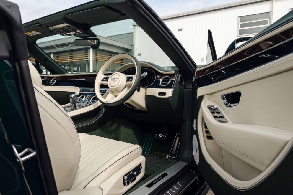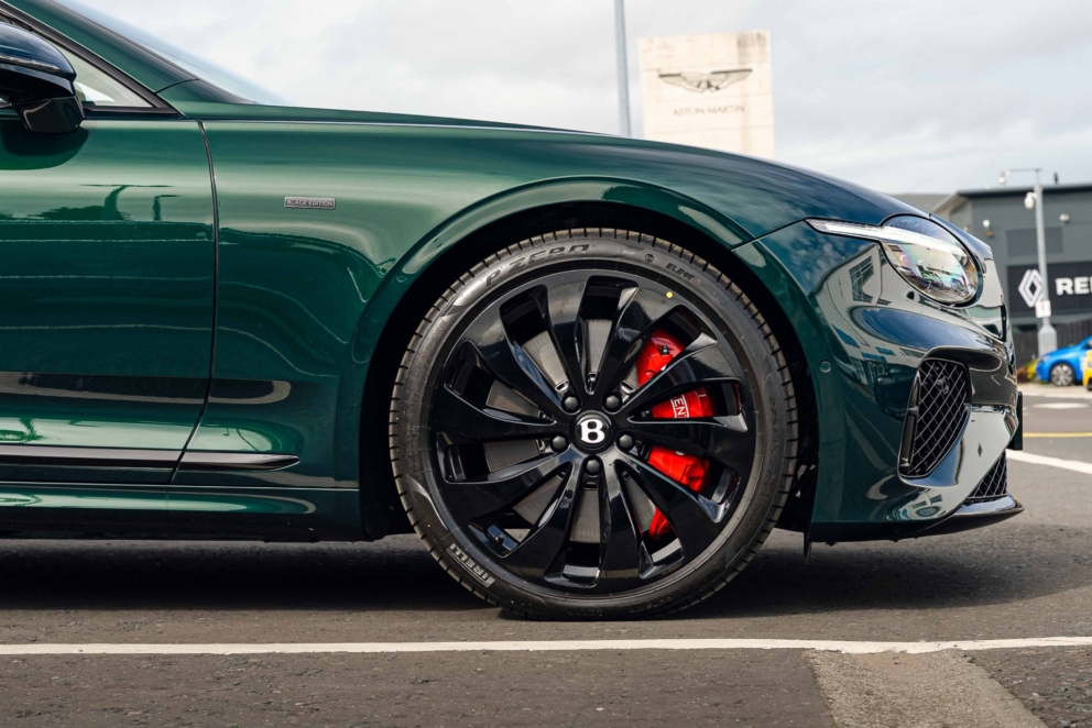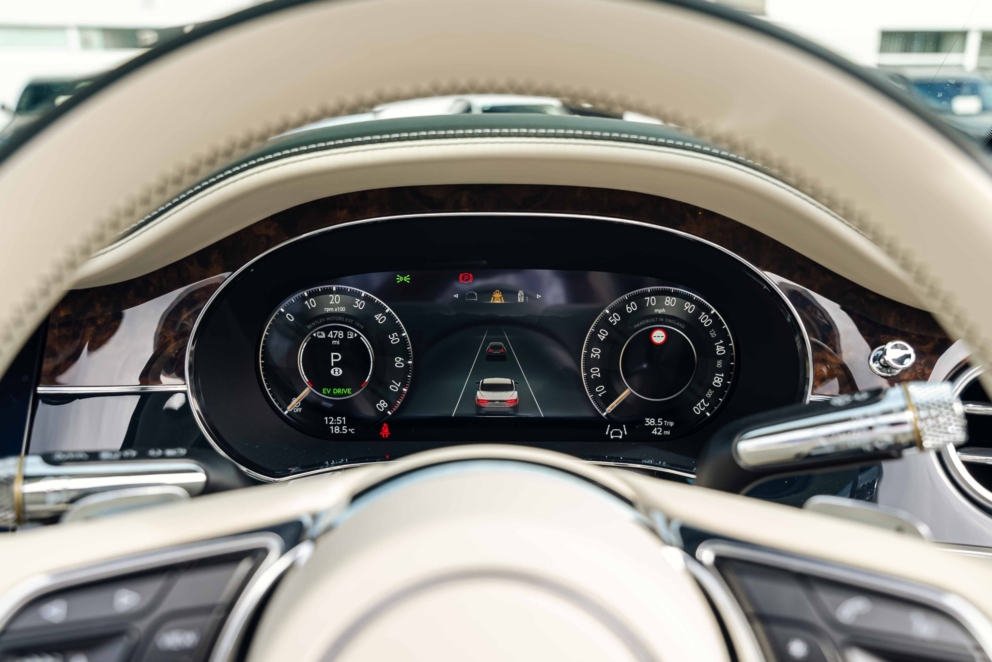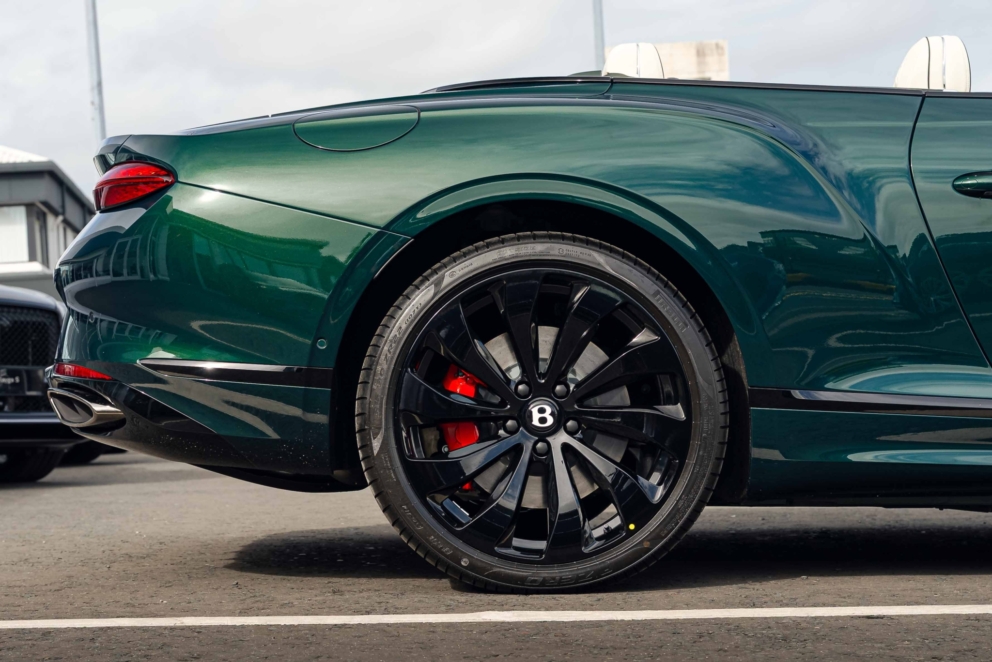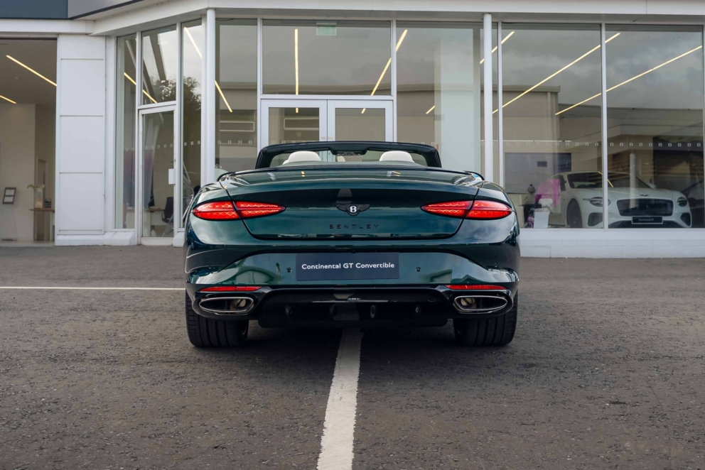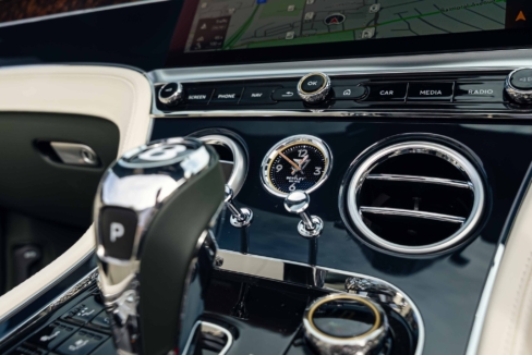 The 2025 Bentley Continental GTC 4.0 V8 Black Edition features a high-performance hybrid powertrain that combines a 4.0L twin-turbocharged V8 engine with a powerful electric motor to produce a combined total of 680 bhp. This system delivers exhilarating performance, allowing for a 0 – 100kmh acceleration of 3.8 seconds and a top speed of 270 kmh