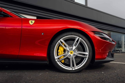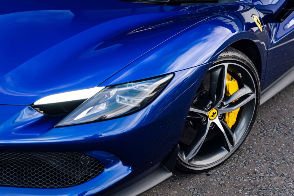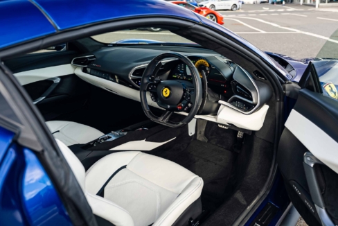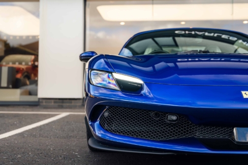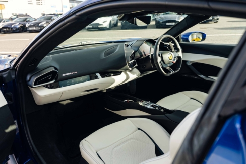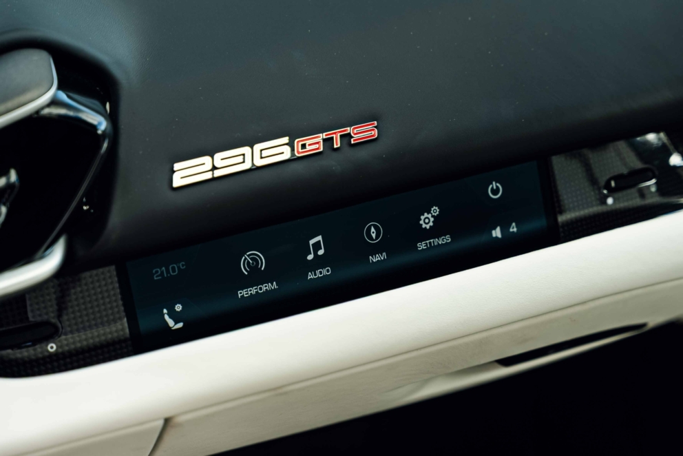 The 2024 Ferrari 296 GTS is the first V6-powered road car Ferrari in decades, and the first mid-engined Ferrari to feature a plug-in hybrid system. It pairs a 3.0-litre twin-turbocharged 120° V6 engine with an electric motor, delivering a staggering 819 bhp and 740 Nm of torque, all sent to the rear wheels through an 8-speed dual-clutch transmission