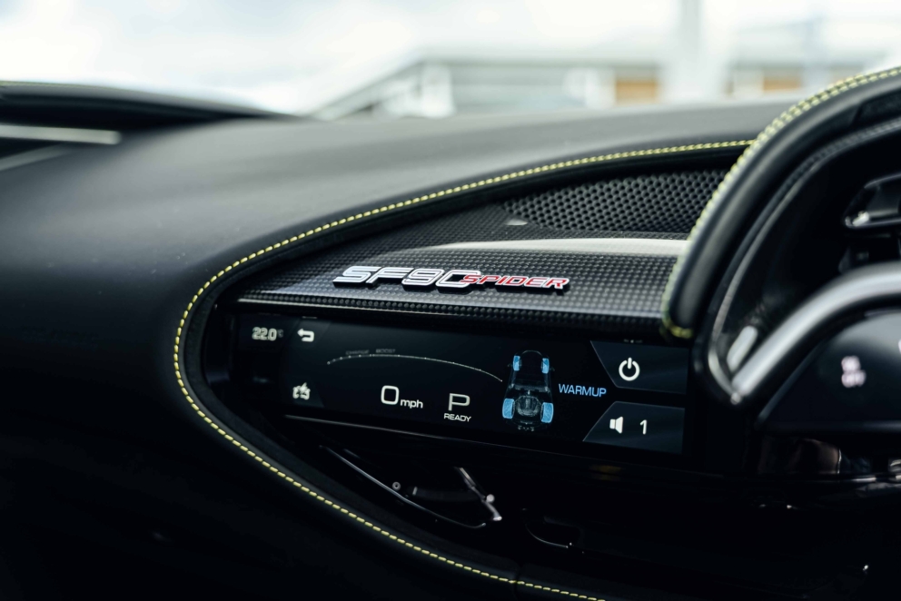 The 2023 Ferrari SF90 Spider is the ultimate expression of Italian hybrid supercar engineering, powered by a 4.0-litre twin-turbocharged V8, paired with three electric motors, producing a staggering 986 bhp and 800 Nm of torque. That’s enough to rocket the SF90 Spider from 0–100 km/h in just 2.5 seconds, and on to a top speed of 340 km/h