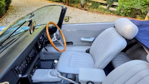 The car’s colour combination is particularly striking. Finished in light metallic blue, the exterior accentuates the graceful curves and unmistakable silhouette of the Series 3 roadster. Inside, the light grey leather interior provides a refined and inviting contrast, creating an atmosphere of understated luxury. Complementing these, is a navy soft top that harmonises elegantly with the bodywork, adding both style and practicality when the hardtop is removed.