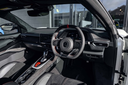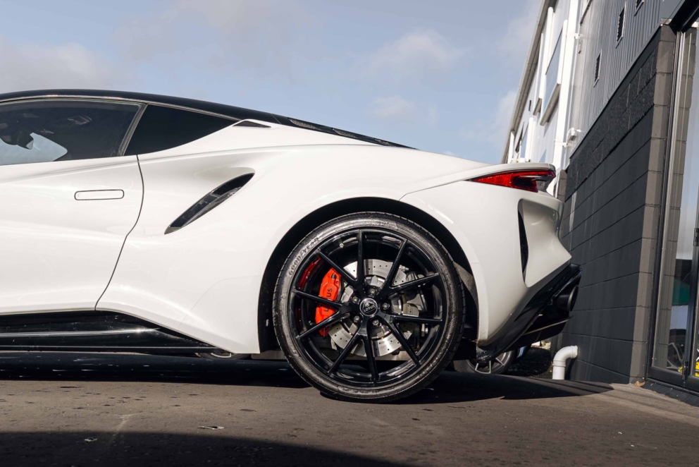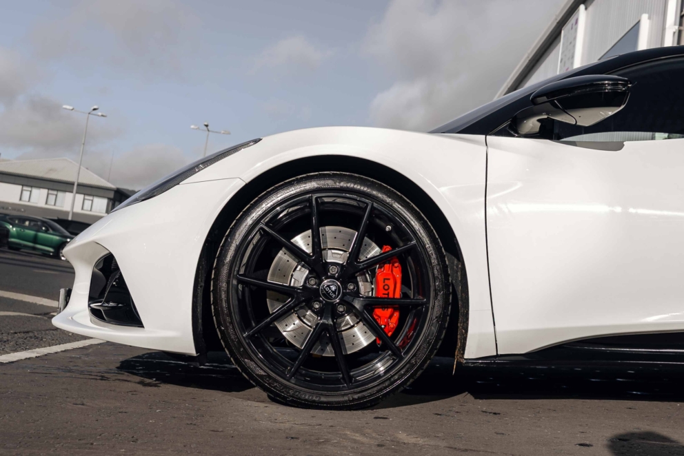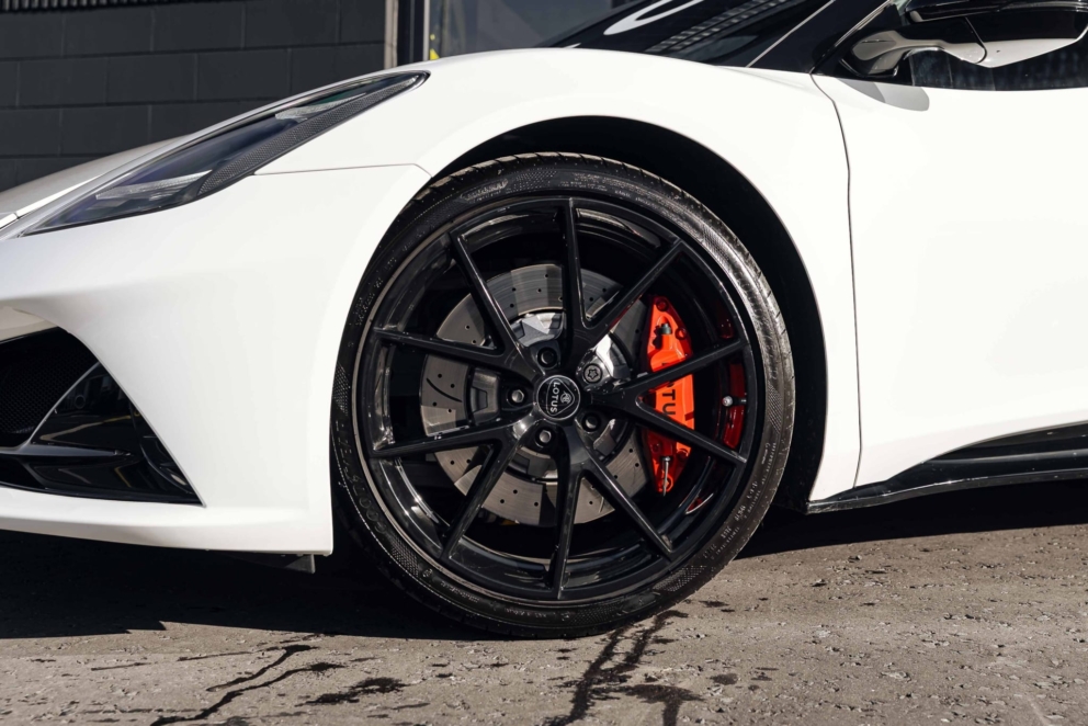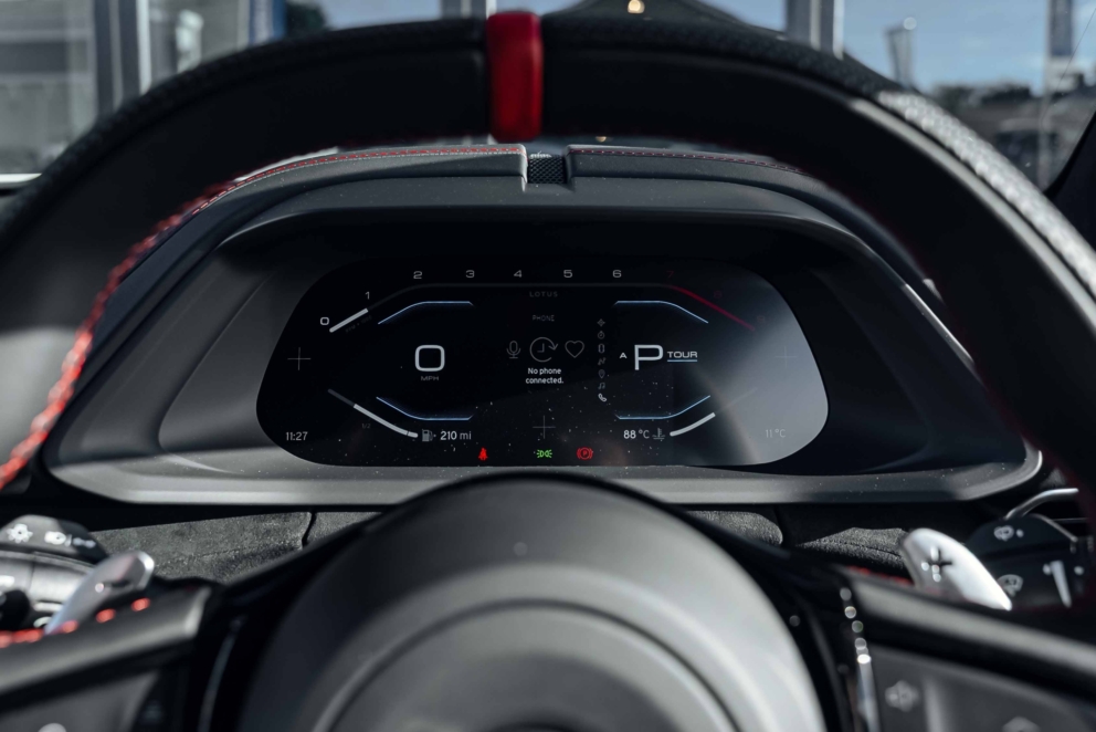 The 2025 Lotus Emira Turbo SE is powered by a 2.0-litre turbocharged inline-four producing 400 hp and 480 Nm of torque, mated to an 8-speed dual-clutch transmission. The result? A blistering 0–100 km/h time of just 4.0 seconds and a top speed of 293 km/h.