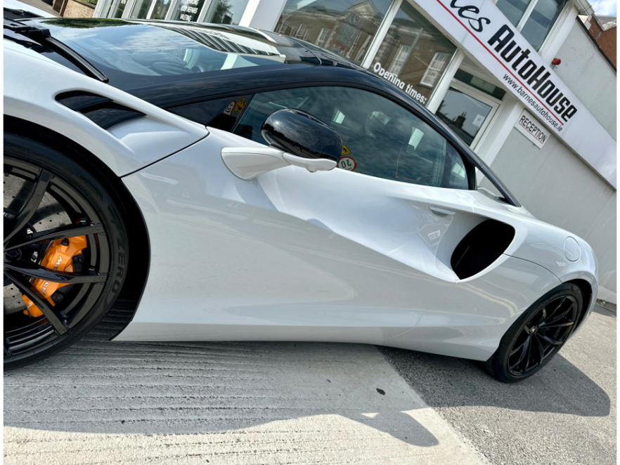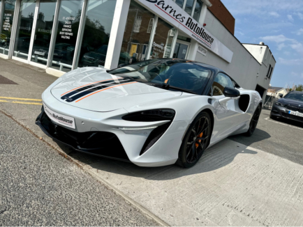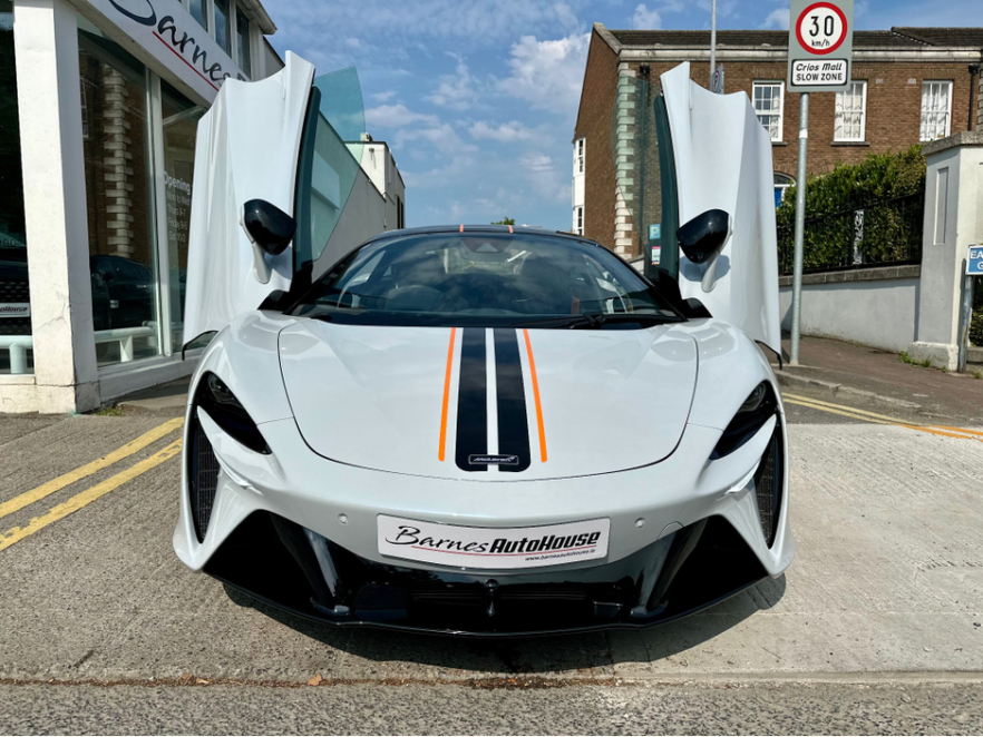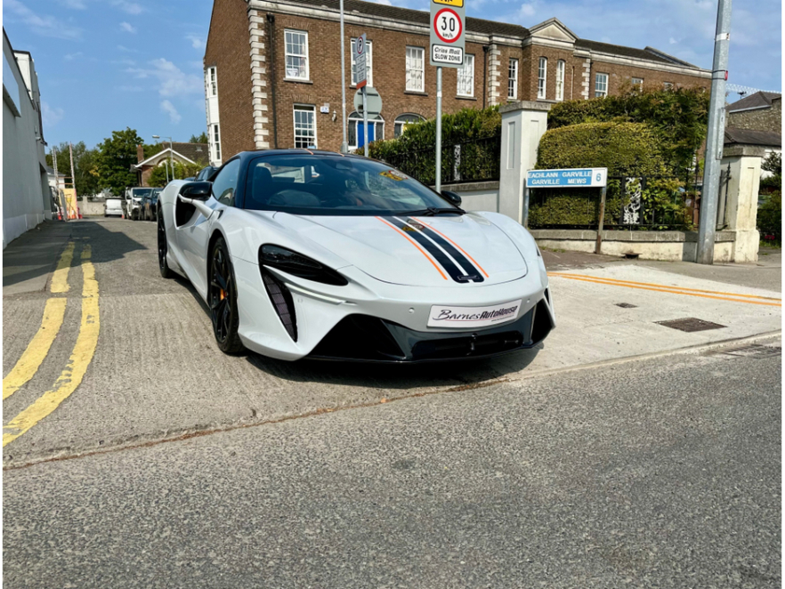 Massively Speced McLaren Artura finished in MSO Paint, Cirrus Grey Metallic with contrasting Gloss Black Roof. Graphite Black Alcantara Performance Interior with McLaren Orange Accents & Seatbelts. 10-Spoke Forged Alloy Wheels finished in Gloss Black with contrasting Mclaren Orange Brake Calipers with Silver Logos. Mclaren Power Pack Upgrade & Sports Exhaust. Bowers And Wilkins Audio System, Smartphone Integration Package, Black Package to include door mirrors Gloss Black, Sports Exhaust in Black Stealth . Black Engine Black Stealth, Front Louvers Gloss Black, Front & Rear Splitters Gloss Black. Club Sport Seats with electric lumbar Adjustment, Gloss Black Interior Package, Practicality Package , Technology Pack, Vehicle Nose Lift, 360 Parking Camera System, Floor Mat Set with McLaren Orange Piping. €140 Annual Road Tax. Please contact Ross to arrange an appointment on 01 4969360 or 086 1683343. Barnes AutoHouse is a dedicated premium used German car retailer located in Rathgar Village Dublin 6. Final Accessories included with this Vehicle are a Protection Cover, Vehicle Tracking System, McLaren Service Pack Valid until 06/27, McLaren Manufacturers Warranty Valid until 06/29. Significant PPF.
