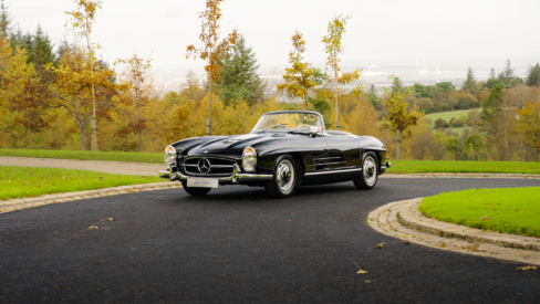 The interior has been soundproofed and new grey carpets bound in black leather have been fitted. The seats, door cards, dashboard and half roll cage are trimmed in black leather with a grey basket weave details. The audio system has been upgraded to a Porsche PCCM head unit and matching speakers.